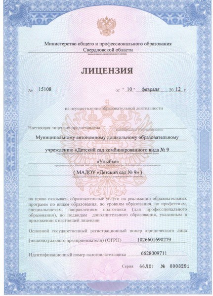 учреждение города Режа «Детский сад комбинированного вида № 9 «Улыбка»» открыт